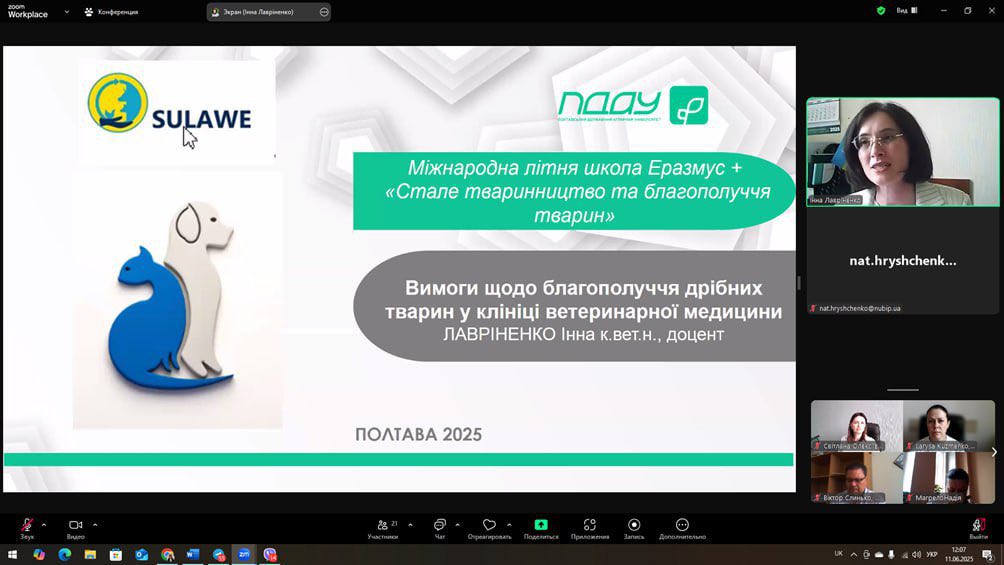 11 червня 2025 року в межах проведення Міжнародної літньої школи Erasmus+ «Стале тваринництво та благополуччя тварин» відбулася лекція на тему «Вимоги до благополуччя дрібних тварин у клініці ветеринарної медицини».