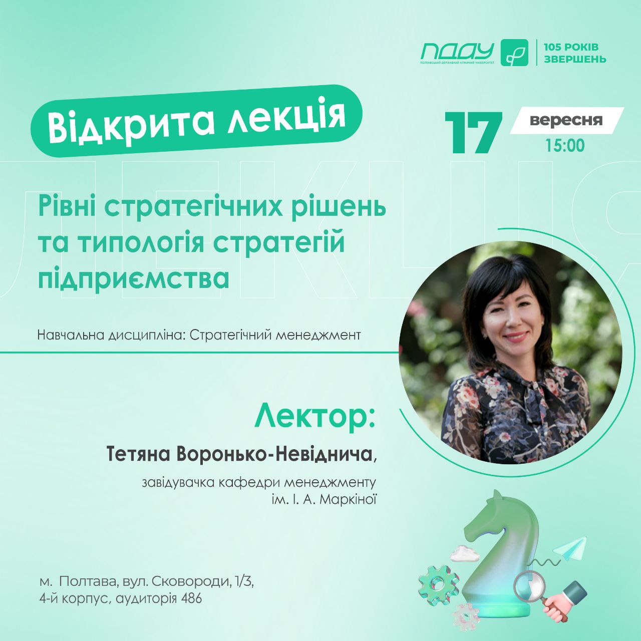 Відкрита лекція з навчальної дисципліни «Стратегічний менеджмент» на тему  «Рівні стратегічних рішень та типологія стратегій підприємства». Детальніше...