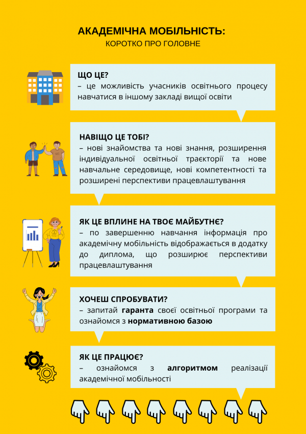АКАДЕМІЧНА МОБІЛЬНІСТЬ – можливість учасників освітнього процесу навчатися, стажуватися чи проводити наукову діяльність в іншому закладі вищої освіти (науковій установі) на території України чи поза її межами.