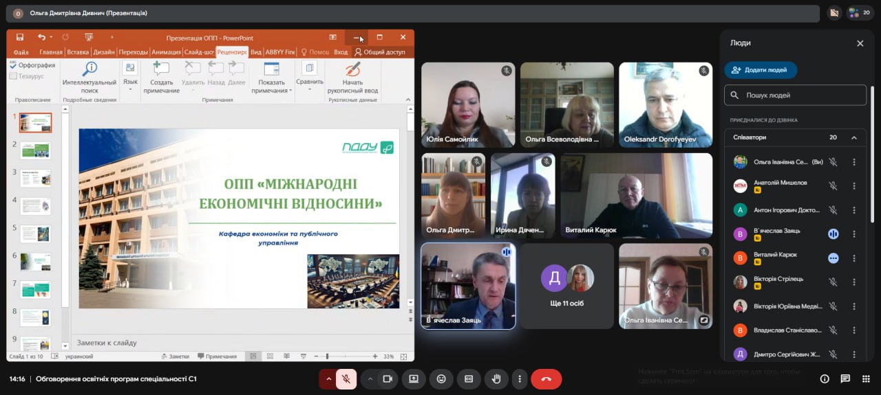04 лютого 2026 року на кафедрі економіки та публічного управління відбулося обговорення освітніх програм за спеціальністю C1 Економіка та міжнародні економічні відносини: