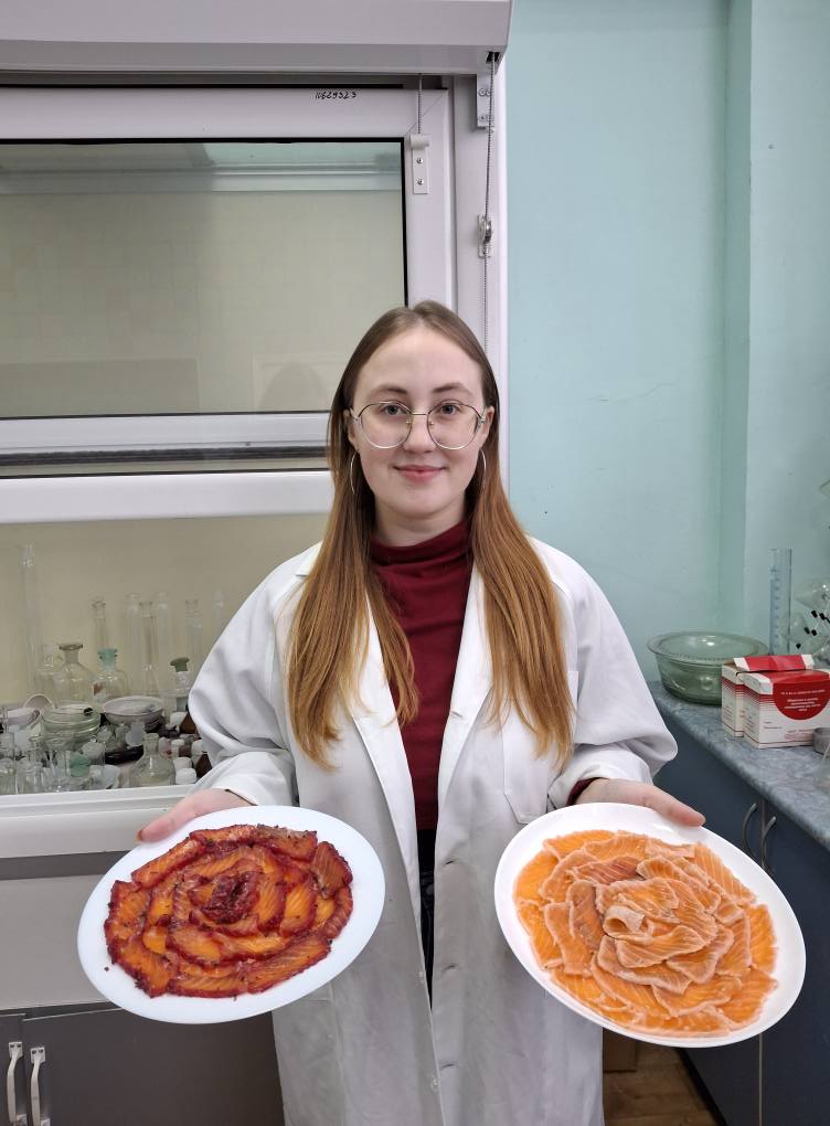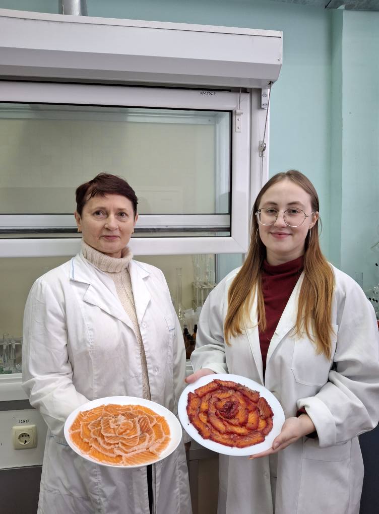 Студенти 4 курсу спеціальності «Харчові технології» під керівництвом доцента кафедри харчових технологій Назаренко В.О. на лабораторному занятті з дисципліни «Технологія харчових продуктів з гідробіонтів» досліджували процес посолу форелі одразу двома способами: сухим і мокрим.