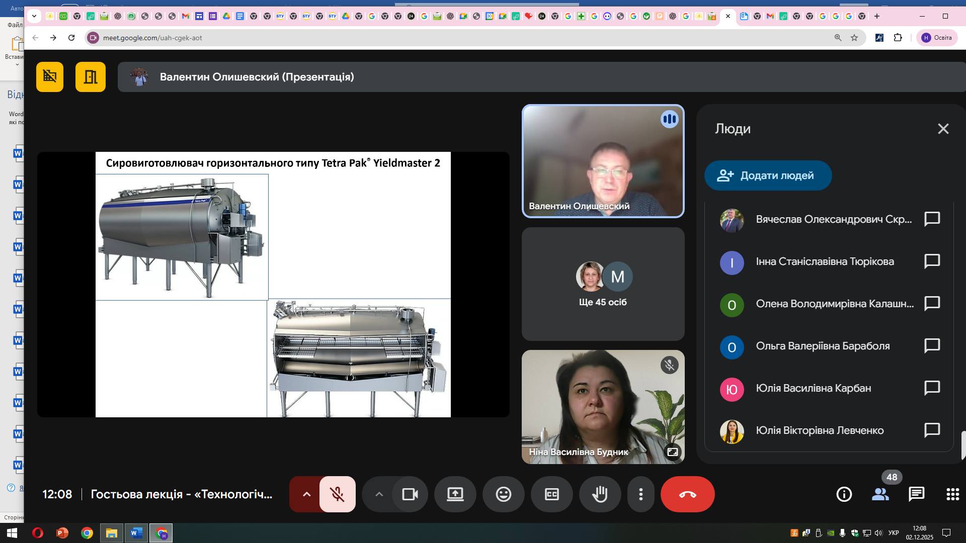 Запрошеним спікером став доктор технічних наук, професор кафедри технологічного обладнання та комп’ютерних технологій проектування НУХТ Валентин Вікторович Олішевський. Його лекція на тему «Технологічне обладнання для виконання основних технологічних операцій з виробництва сиру кисломолочного, вершкового масла, сухого молока» викликала значний інтерес та зібрала понад шістдесят слухачів. Важливо, що до заходу долучилися не лише здобувачі та викладачі ПДАУ, а й представники Полтавського університету економіки і торгівлі, що підкреслює актуальність теми для фахівців харчових технологій регіону.