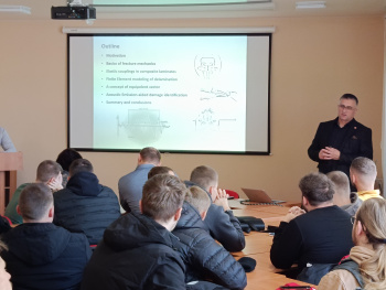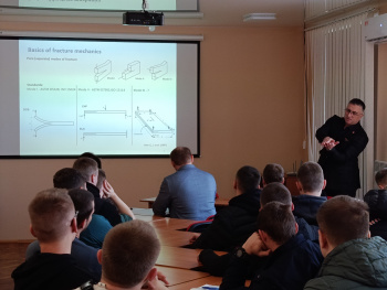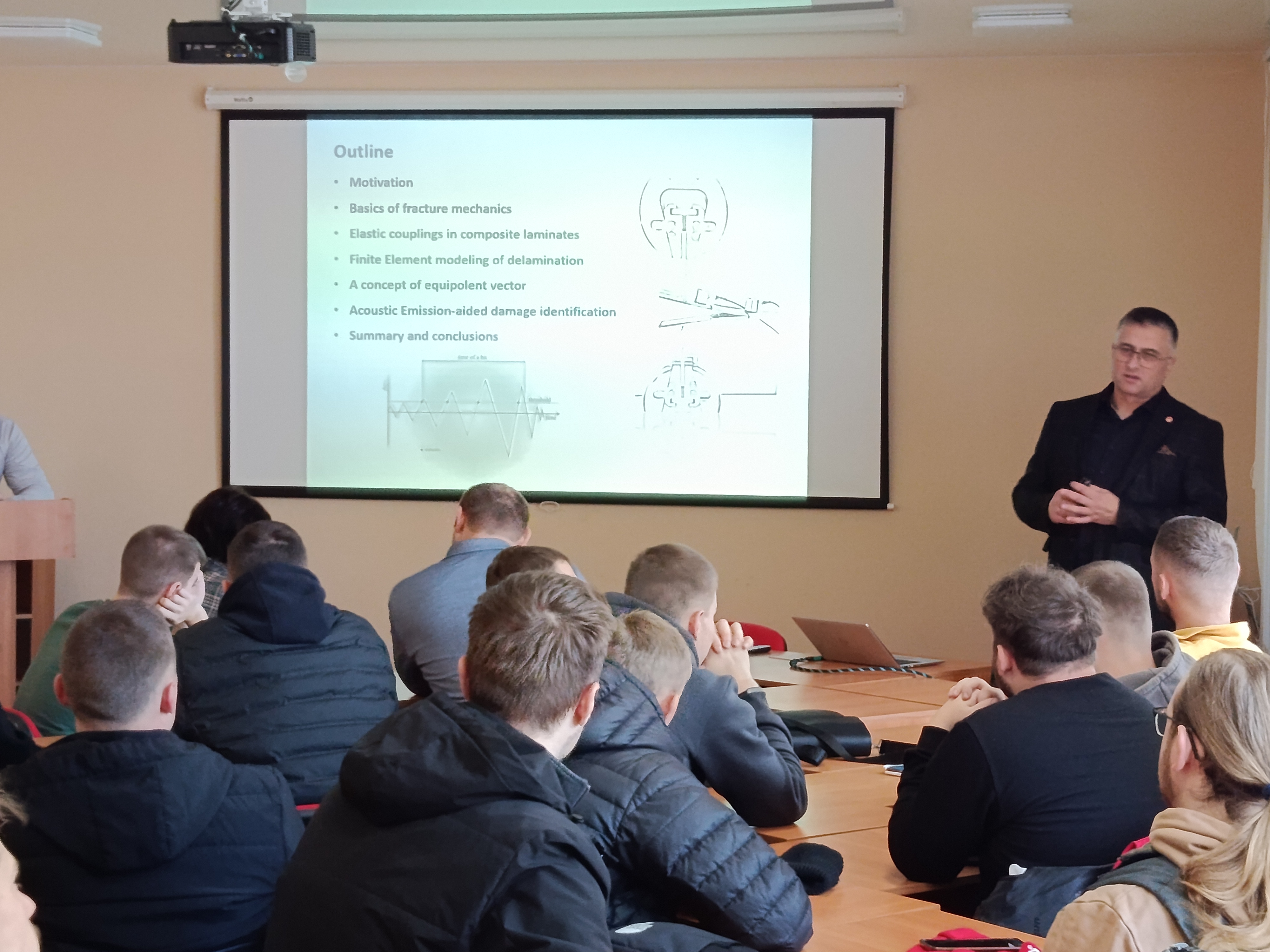 Професор Самборскі поділився своїми знаннями з теми "Delamination Phenomena in Elastically Coupled FRP Composites". Його лекція викликала справжній захват серед присутніх здобувачів вищої освіти. Зал був наповнений запитаннями та жвавими дискусіями, що свідчить про високий рівень зацікавленості та важливість теми для майбутніх інженерів.