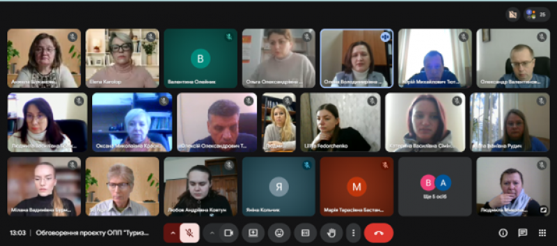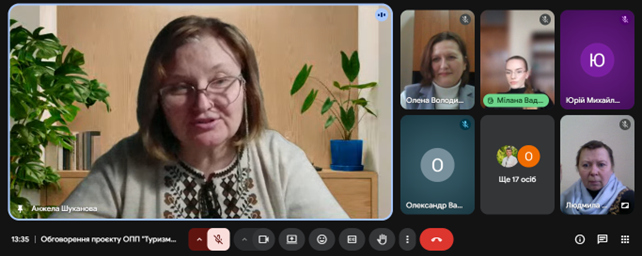 Захід, що пройшов у форматі відеоконференції, об’єднав представників академічної спільноти, практиків туристичної галузі, органів влади та здобувачів вищої освіти. Модераторкою зустрічі виступила Олена Єгорова – голова ради з якості вищої освіти спеціальності «Туризм та рекреація».