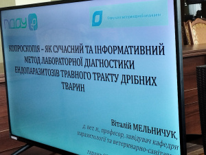 Пан Віталій прочитав лекцію для учасників конференції на тему: "Копроскопія як- сучасний та інфрмативний метод лабораторної діагностики ендопаразитів травного тракту дрібних тварин"