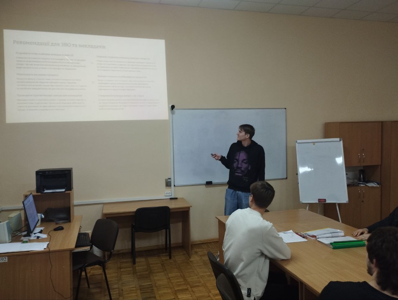 Дискусія була жвавою та конструктивною: студенти пропонували провокативні запитання про межі допустимого використання ШІ, про майбутнє академічного письма у 2030 році та про те, як змінити мотивацію від «результату за будь-яку ціну» до щирого прагнення до знань. У підсумку учасники дійшли спільної думки, що лише проактивний підхід, постійне оновлення правил і інструментів, а також спільна відповідальність викладачів і студентів дозволять зберегти справжню цінність освіти в епоху штучного інтелекту.