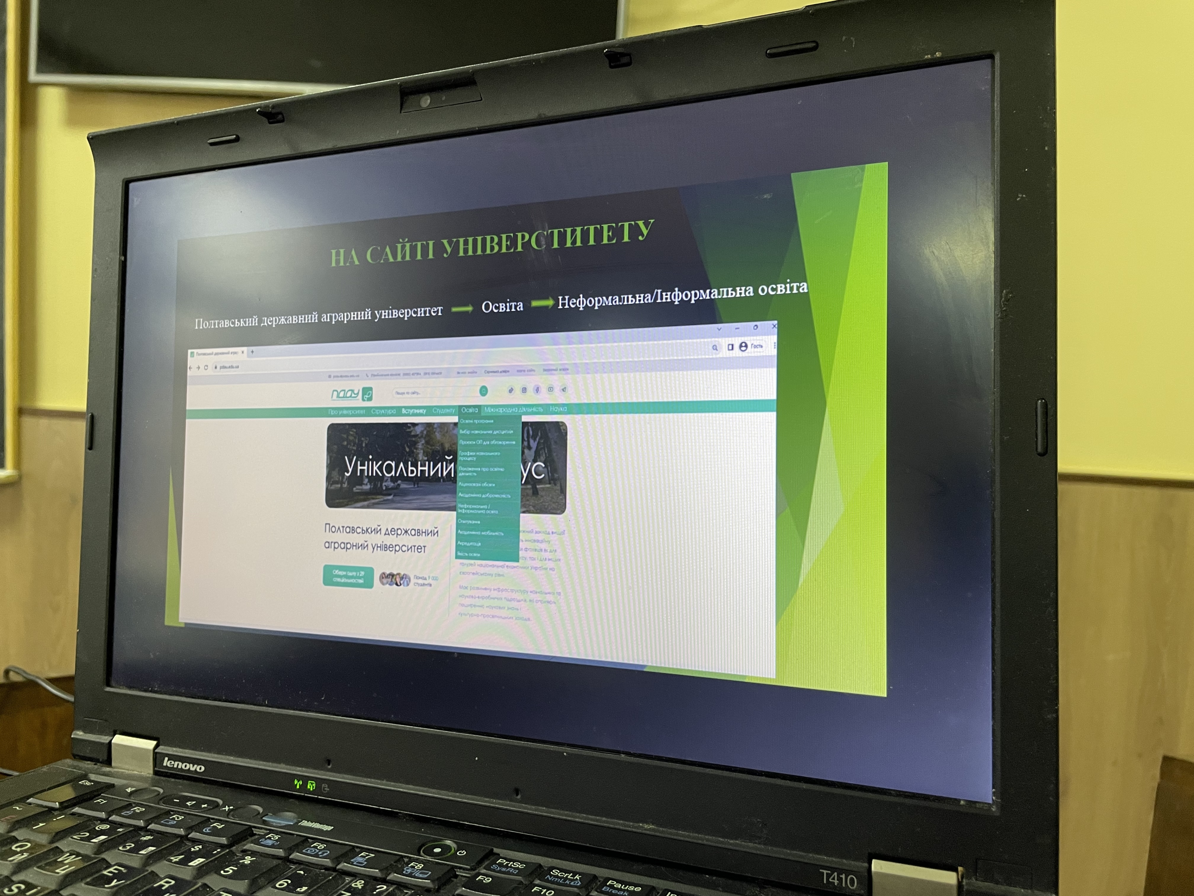 У межах заходу доповідачка представила ґрунтовний аналіз сутності неформальної освіти як важливої складової сучасного освітнього процесу та окреслила основні онлайн-платформи, що надають можливість проходження курсів, тренінгів та інших освітніх програм поза межами формальної системи навчання. Окрему увагу було приділено процедурі перезарахування результатів неформального навчання в університеті, що сприяє офіційному визнанню набутих компетентностей та підсилює гнучкість індивідуальної освітньої траєкторії студентів.