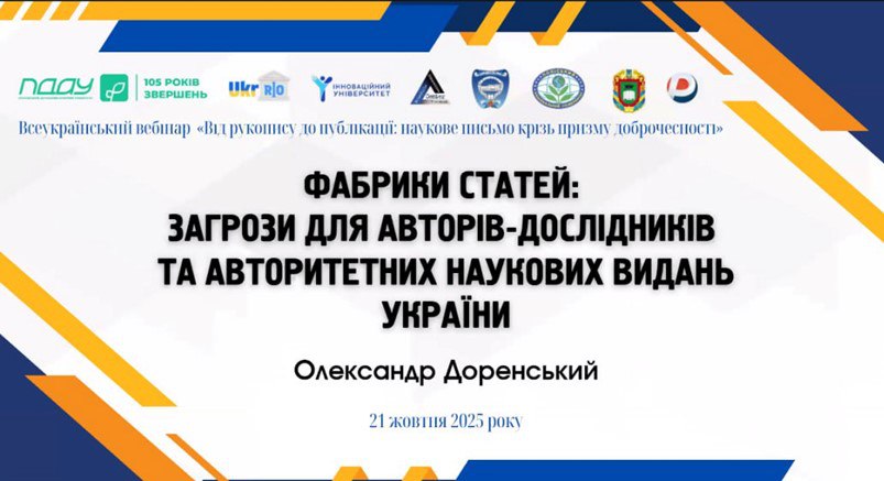 21 жовтня 2025 року здобувачі вищої освіти другого (магістерського) рівня спеціальності Маркетинг та викладачі кафедри маркетингу долучилися до Всеукраїнського вебінару “Від рукопису до публікації: наукове письмо крізь призму доброчесності”.