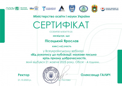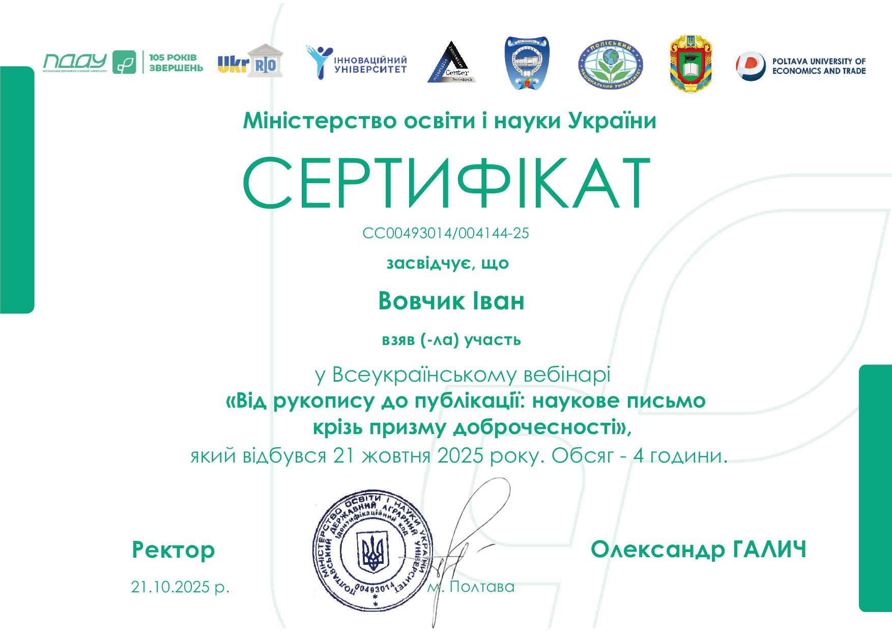 За підсумками вебінару учасники отримали сертифікати, що підтверджують їхню активну участь і прагнення до професійного розвитку у сфері наукових досліджень.