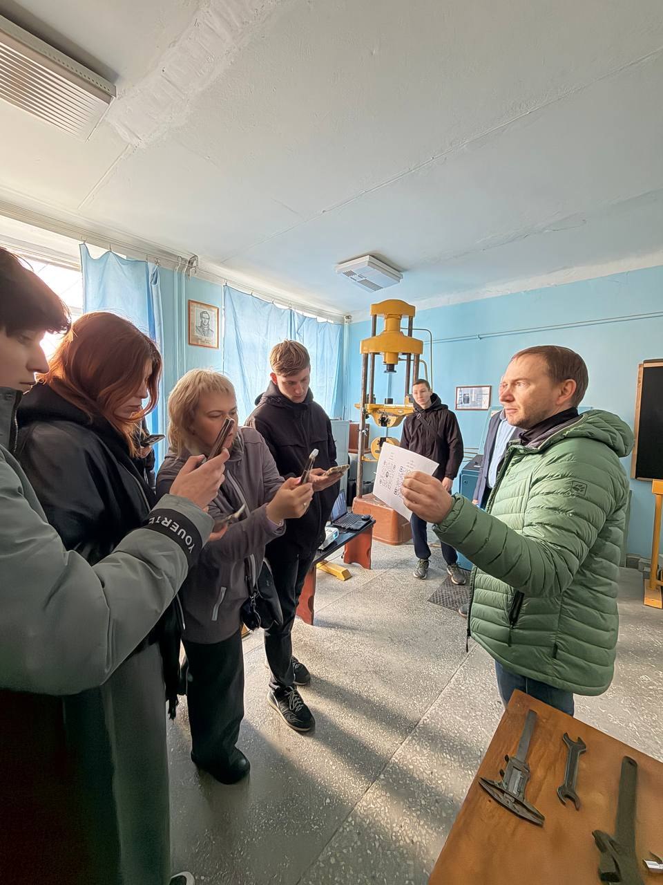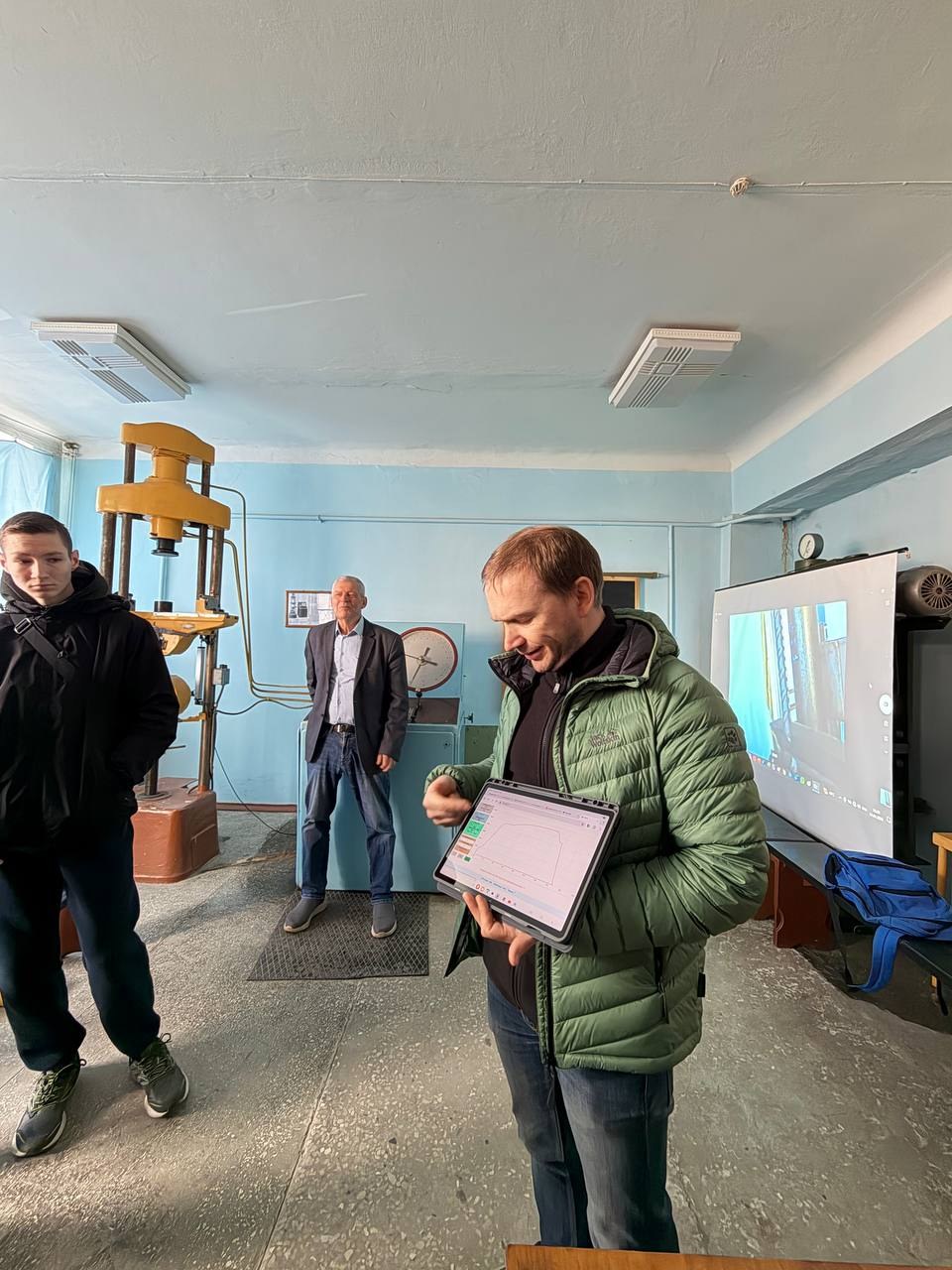У лабораторії міцності матеріалів та конструкцій було продемонстровано проведення випробувань із використанням сучасних цифрових інструментів. Зокрема, інтеграція мобільних пристроїв у навчальний процес дозволяє оперативно фіксувати та обробляти результати вимірювань.