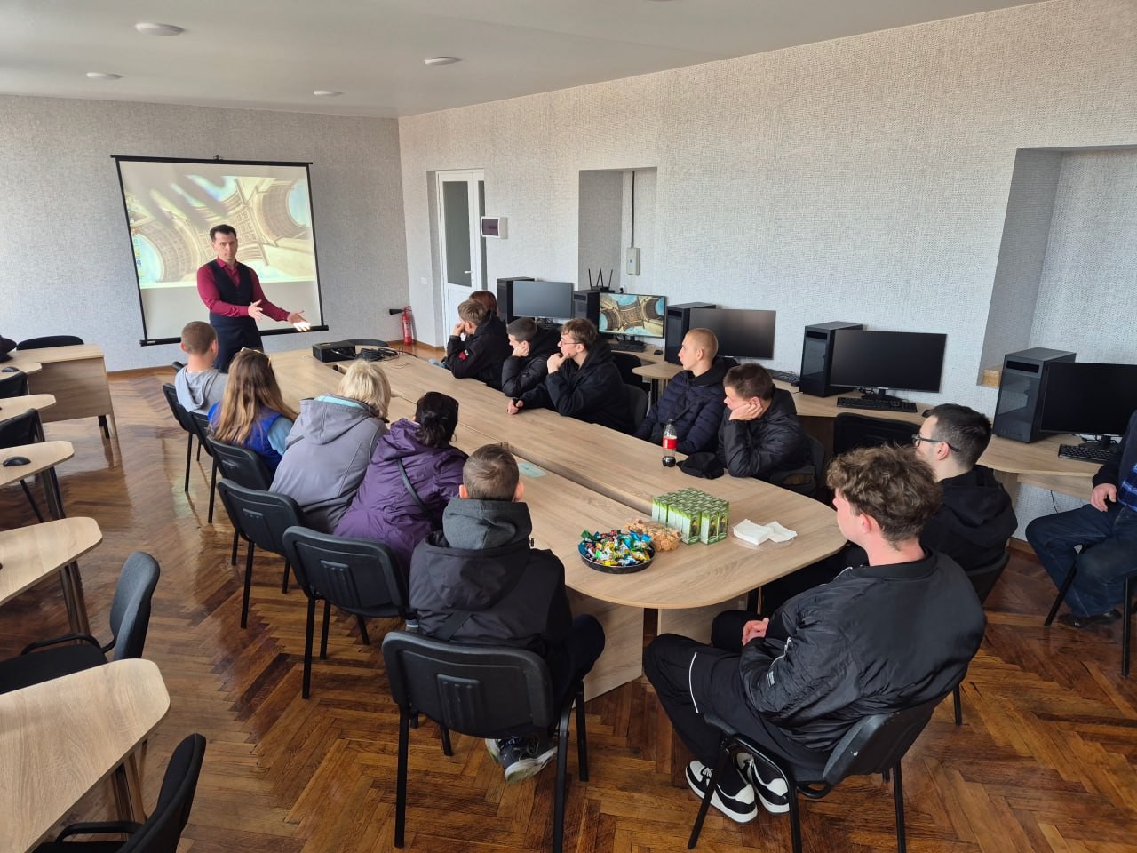Окрему увагу приділено можливостям комп’ютерної лабораторії інформаційного моделювання будівель. Руслан Петраш та Сергій Яхін ознайомили гостей із застосуванням BIM-технологій на базі програмних комплексів 3ds Max, Revit та Allplan, продемонструвавши етапи цифрового проєктування.