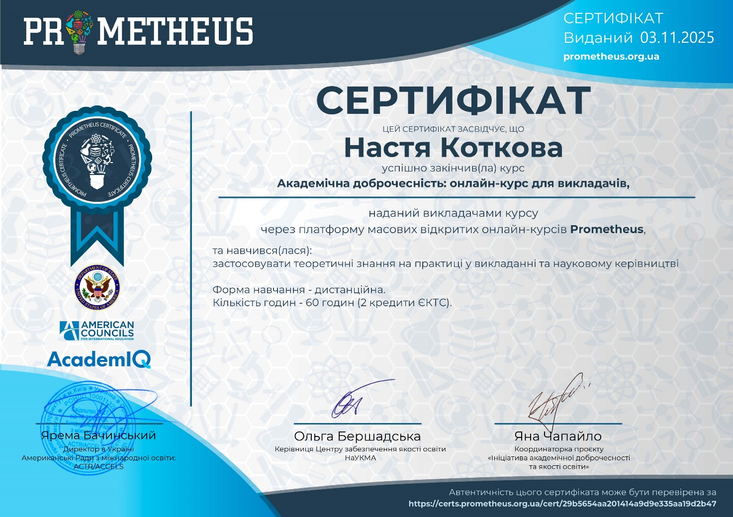 Неформальна освіта сприяє розвитку здатності до самонавчання, формуванню критичного мислення, дотриманню принципів академічної доброчесності, підвищенню рівня цифрової грамотності та усвідомленню відповідальності за побудову власної освітньої траєкторії.