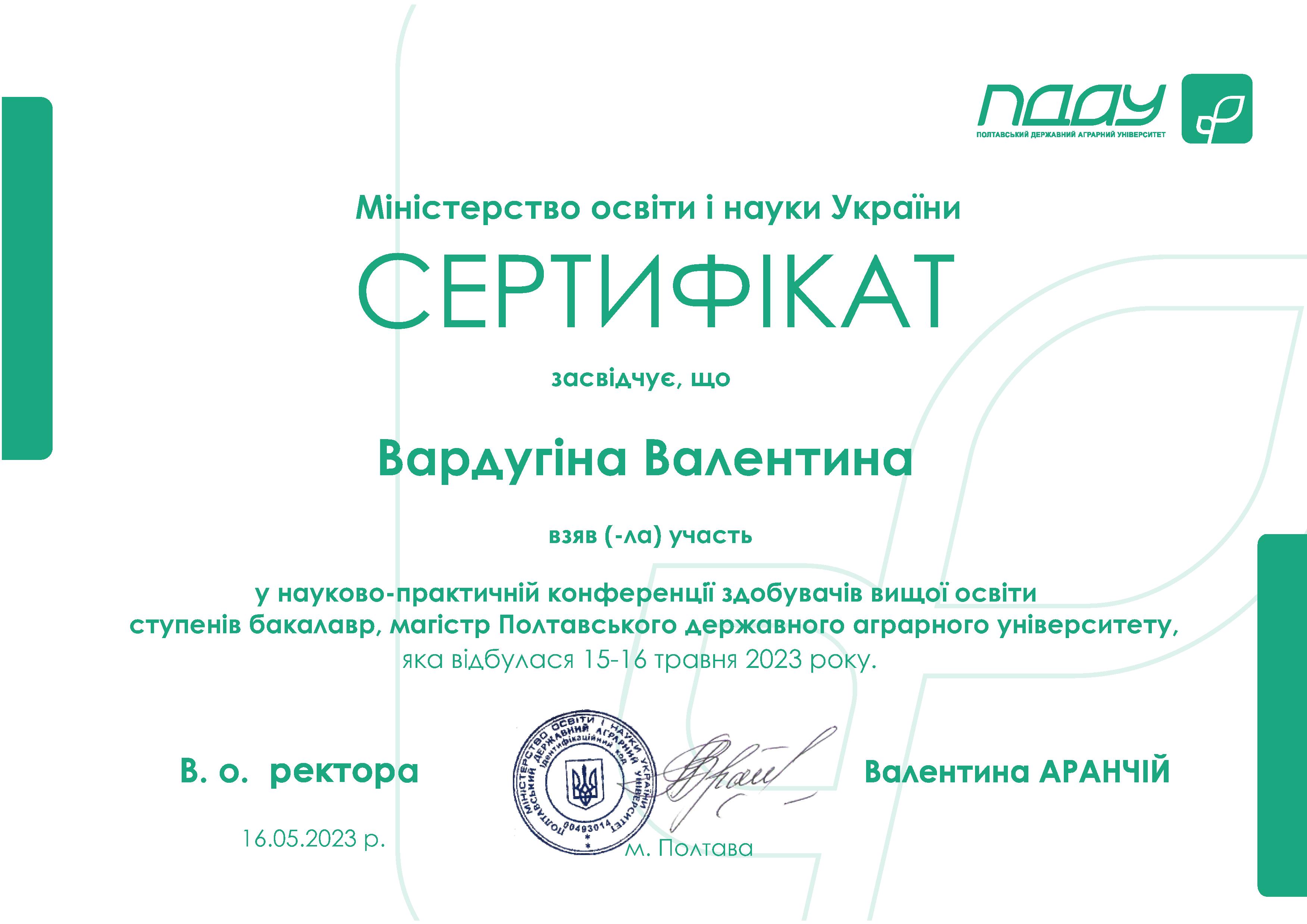 Участь у конференції ЗВО ступенів бакалавр, магістр ПДАУ (2023 р)
