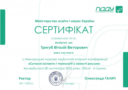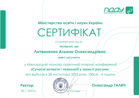 Участь у конференції "Сучасні аспекти і технології у захисті рослин" (2023 р)