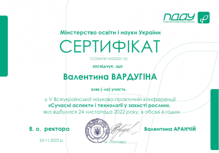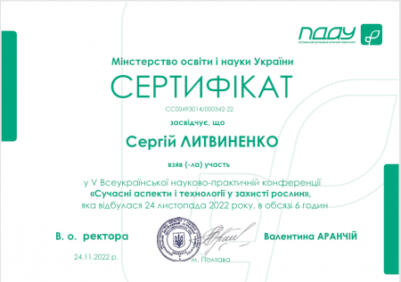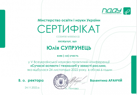 Участь у конференції "Сучасні аспекти і технології у захисті рослин" (2022 р)