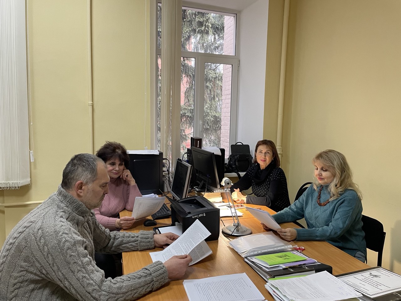 На засіданні були присутні гарант освітньої програми Ірина КОРОТКОВА, голова ради з якості вищої освіти спеціальності Валентина КРИКУНОВА, доцент кафедри Таміла РОМАШКО, доцент кафедри Сергій КОРІННИЙ та здобувачка вищої освіти Ірина ГАЛУШКО.