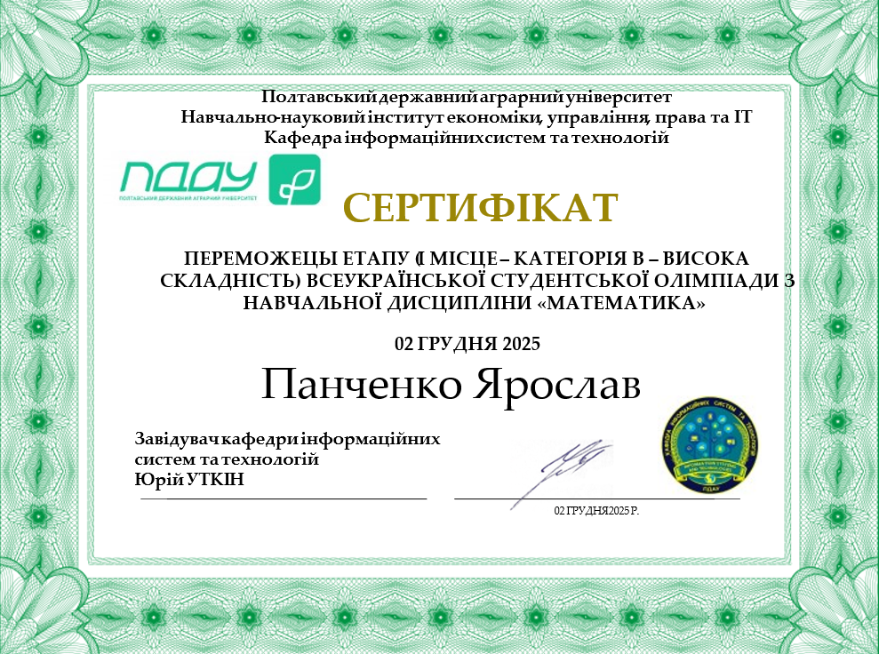 2 грудня 2025 року на кафедрі інформаційних систем та технологій було проведено Олімпіаду з математики, спрямовану на підтримку академічної доброчесності, розвиток логічного мислення та підготовку здобувачів до подальших наукових і професійних викликів.