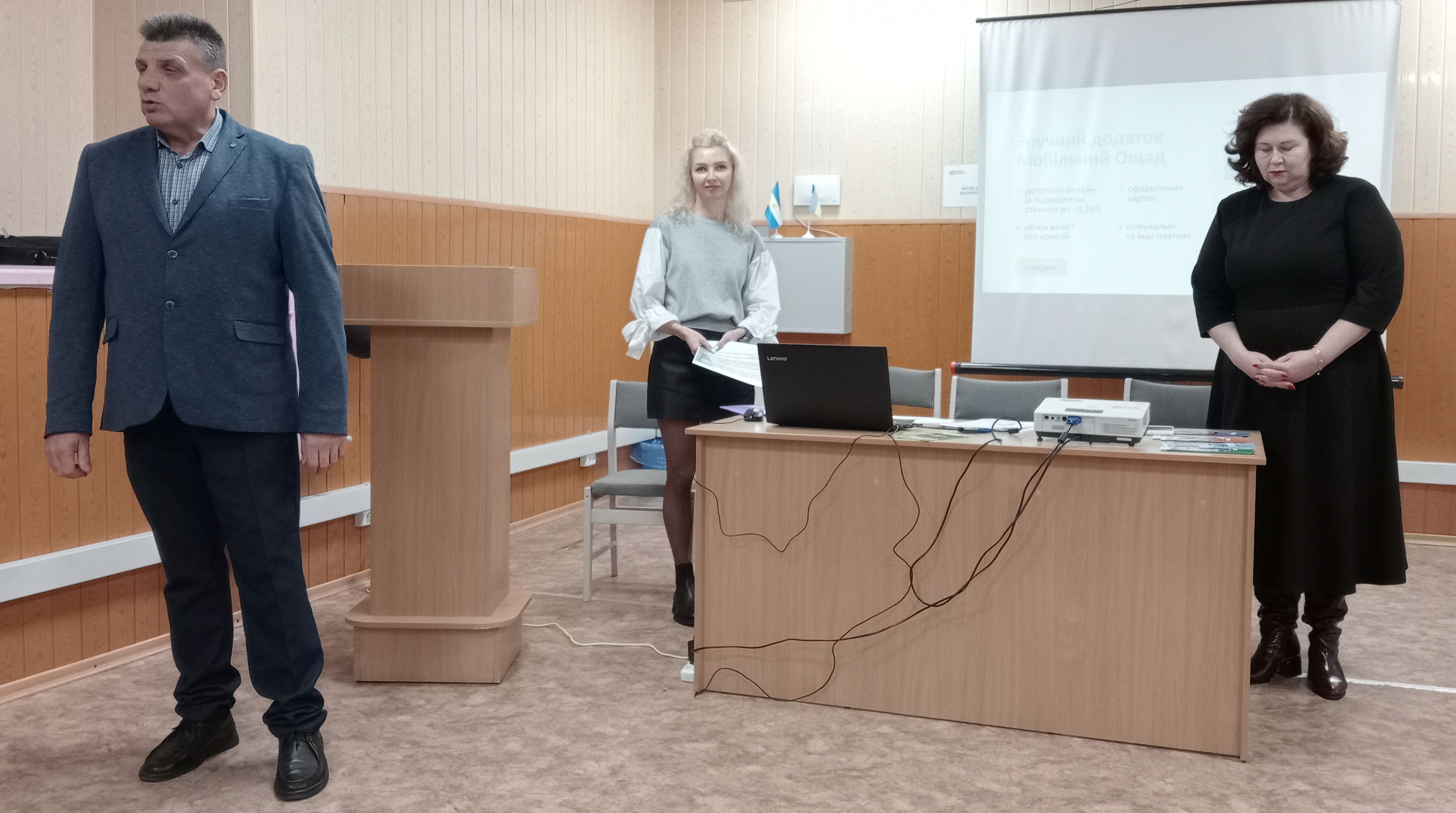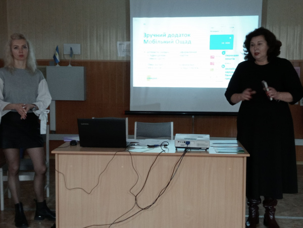 Спікерами лекції були Мірошніченко Марина Петрівна - заступник керуючого територіально відокремленого безбаланосового відділення АТ "Ощадбанк" та Кажодуб Олена Вікторівна - керуюча територіально відокремленого безбалансового відділення АТ "Ощадбанк".