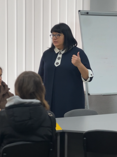 Старшокласників гостинно зустріла завідувач кафедри Вікторія Медвідь, яка привітала ліцеїстів та розповіла про особливості підготовки фахівців і перспективи навчання за спеціальностями економічного та управлінського спрямування.