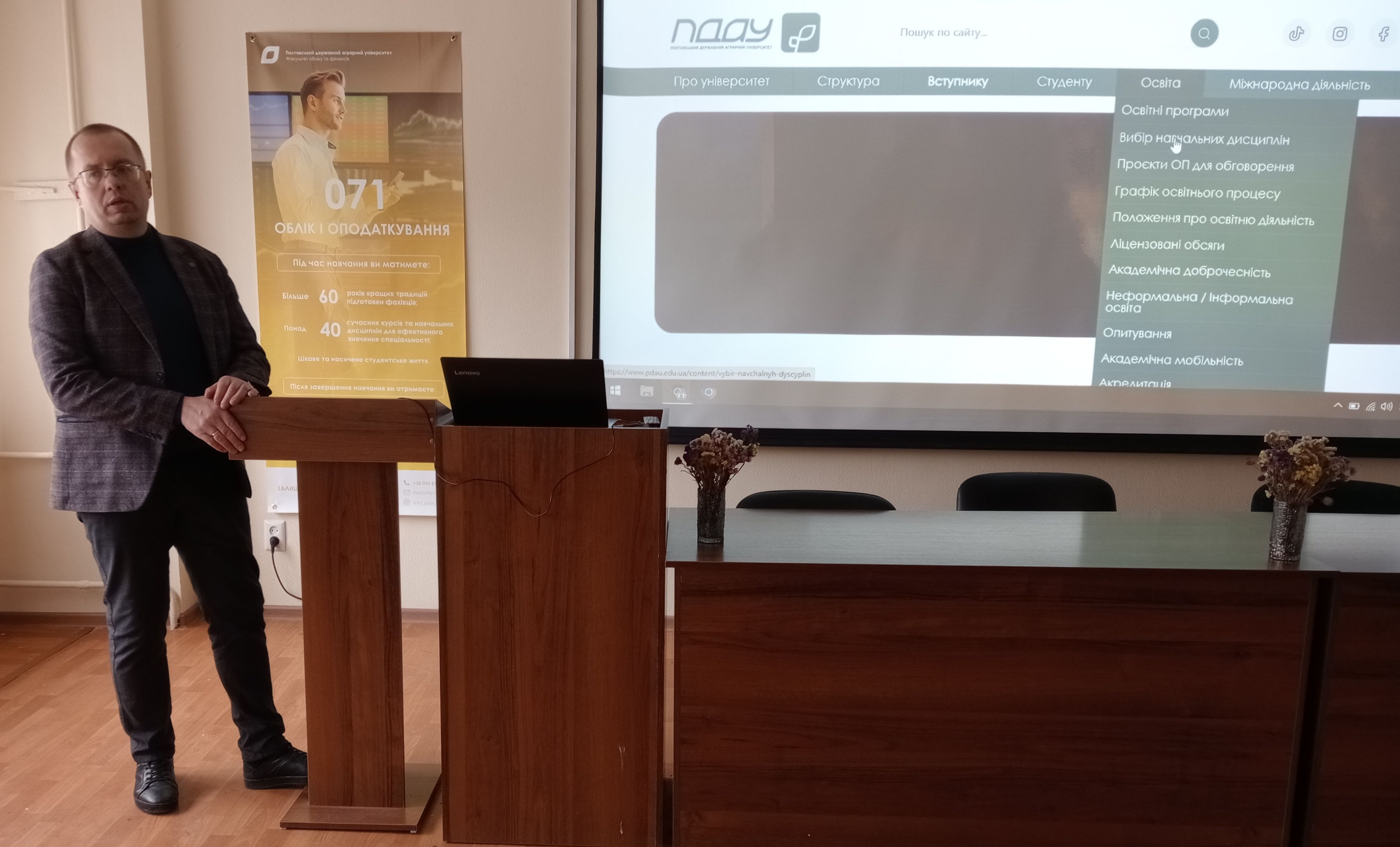 4 березня 2026 року відповідно до Положення про забезпечення права на вибір здобувачами вищої освіти навчальних дисциплін в Полтавському державному аграрному університеті начальник навчального відділу ПДАУ Віктор ЛЯШЕНКО та керівництво факультету обліку та фінансів ініціювало зустріч із здобувачами ФОФ всіх спеціальностей 2025 року набору для розяснення: