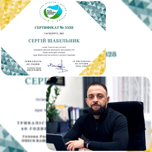 12.12.2024 р. Успішне завершення Осінньої школи молодого науковця 4.0 здобувачем вищої освіти за ОНП Менеджмент - Сергієм ШАБЕЛЬНИКОМ. Детальніше...