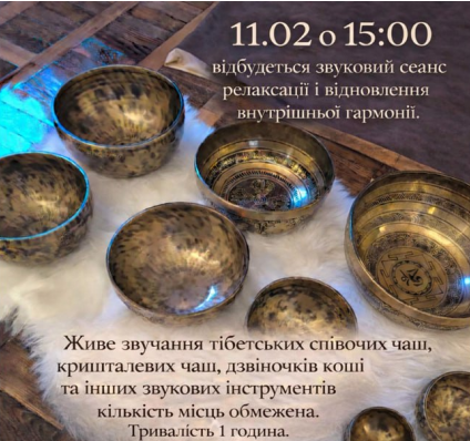 12 лютого 2025 року для викладачів та співробітників в університетському Центрі інноваційних методів психоемоційної підтримки ментального здоров’я «Внутрішня сила» відбувся перший сеанс звукотерапії із тібетськими співочими чашами, який провела сертифікований звукотерапевт Юлія Молчанова.
