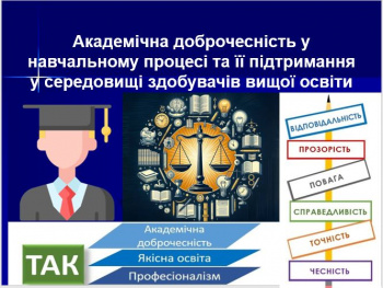 7 жовтня 2025 року на кафедрі нормальної і патологічної анатомії та фізіології тварин проведений семінар на тему: «Академічна доброчесність у навчальному процесі та її підтримання у середовищі здобувачів вищої освіти» для студентів 1 курсу Н6 Ветеринарна медицина ОПП Ветеринарна медицина та Хвороби дрібних тварин. Спікер заходу: кандидат ветеринарних наук, доцент Киричко О.Б. Було відмічено важливість дотримання академічної доброчесності у навчальному процесі та її підтримання у середовищі здобувачів вищої освіти для збереження етичних норм, а також її роль у формуванні фахових компетентностей.