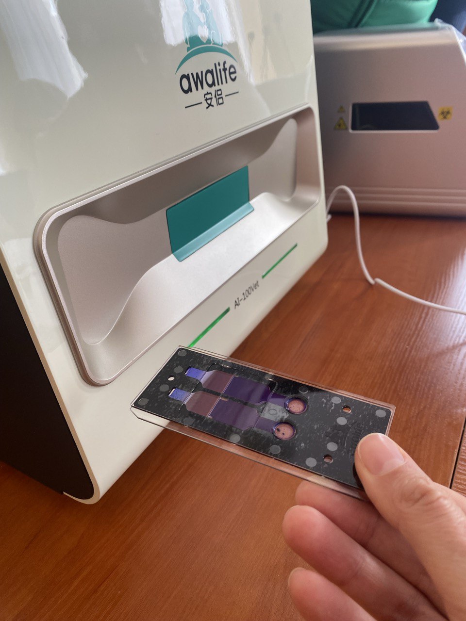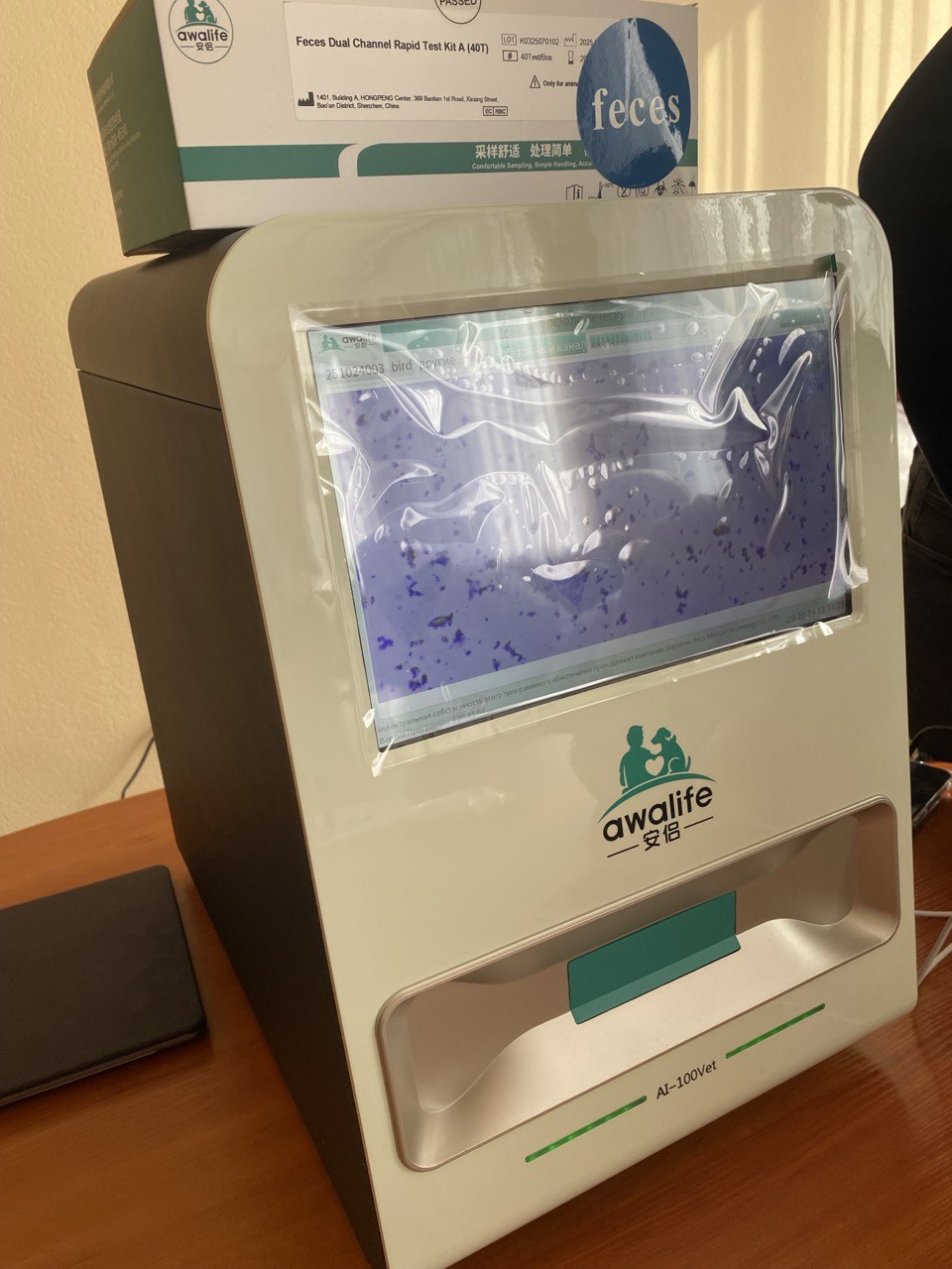 Олег Бондаренко представник компанії УКРВЕТ, ознайомив з особливостями роботи на багатофункціональному морфологічному аналізаторі. Високотехнологічний ветеринарний аналізатор нового покоління дозволяє за допомогою штучного інтелекту визначити 30 параметрів фекалій.