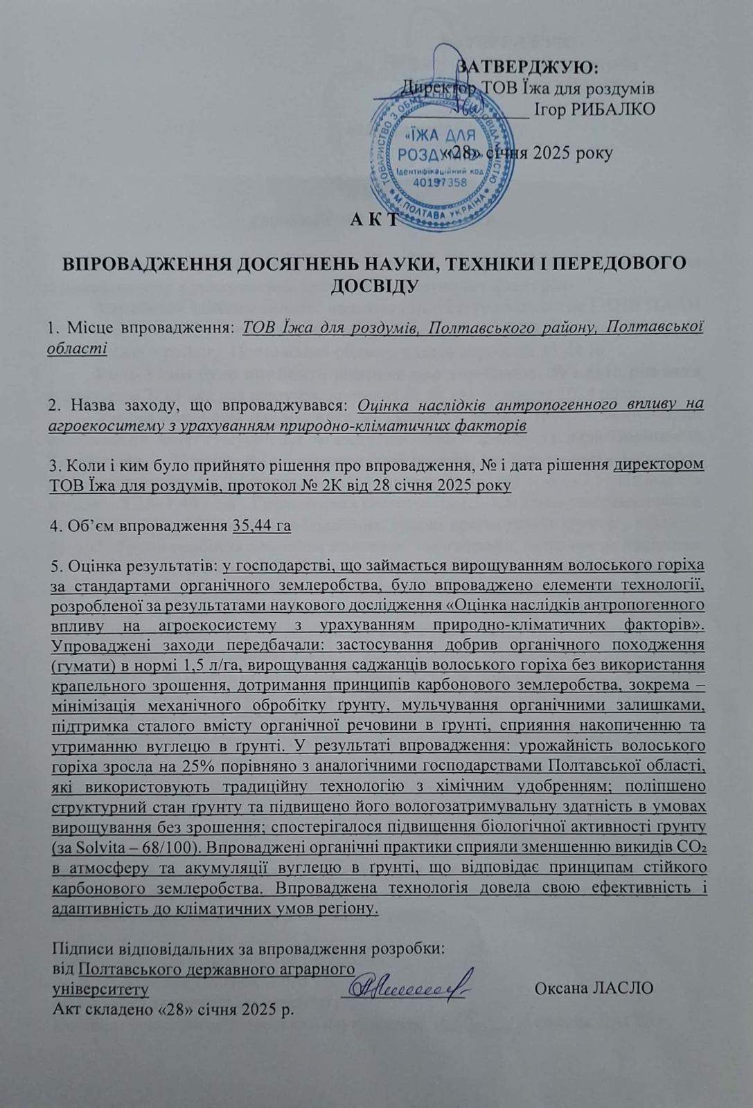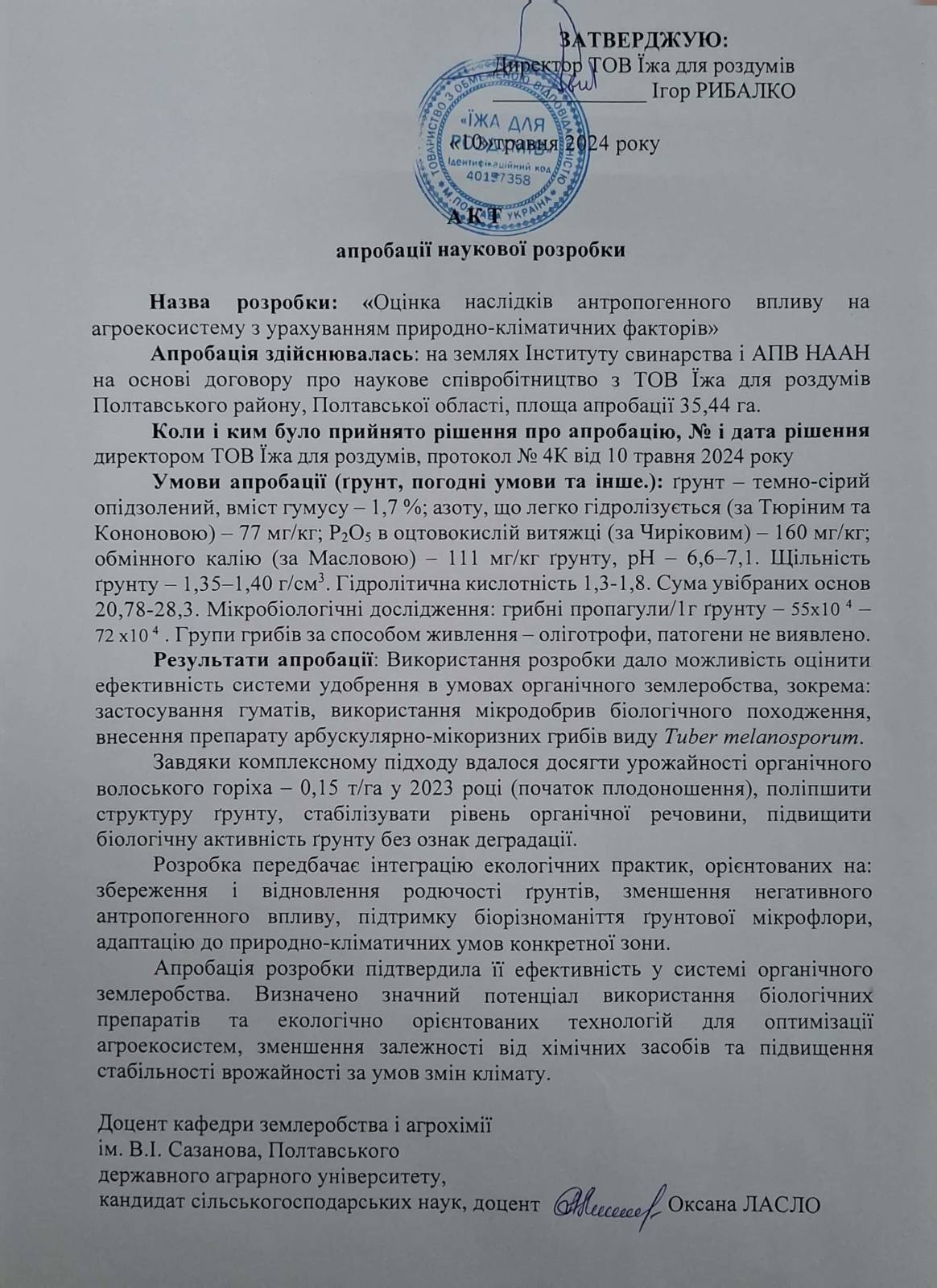 6. Агротехнічні та біотехнологічні заходи регулювання властивостей об'єктів сільськогосподарського призначення. (2.2 - прикладні дослідження і розробки). № 0123U104982. Керівник Короткова І.В. (2024-2026). Обсяг фінансування - 3000 грн