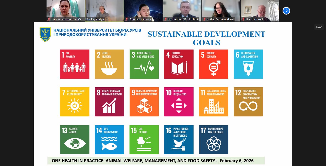 6 лютого 2026 року на базі Національного університету біоресурсів і природокористування України відбулася МІЖНАРОДНА НАУКОВА КОНФЕРЕНЦІЯ «ONE HEALTH IN PRACTICE: ANIMAL WELFARE, MANAGEMENT, AND FOOD SAFETY» (ЄДИНЕ ЗДОРОВ'Я НА ПРАКТИЦІ: ДОБРОБУТ ТВАРИН, УПРАВЛІННЯ ТА БЕЗПЕКА ХАРЧОВИХ ПРОДУКТІВ ).