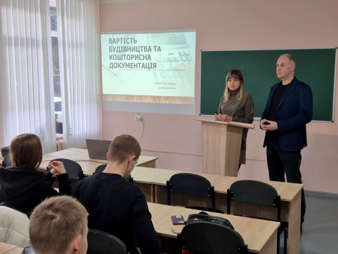 13 листопада 2025 року у ауд. 306 відбулася відкрита лекція директорки ТОВ «БІМБУД» Анастасії Нижник на тему «Вартість будівництва та кошторисна документація».