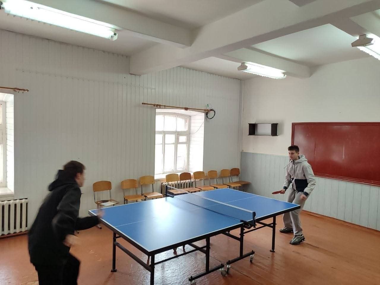 Спортивний майданчик 170 кв. м Для проведення занять з фізичного виховання та спортивних секцій: мінібфутболу, волейболу, настільного тенісу, легкої атлетики, шахів і шашок.