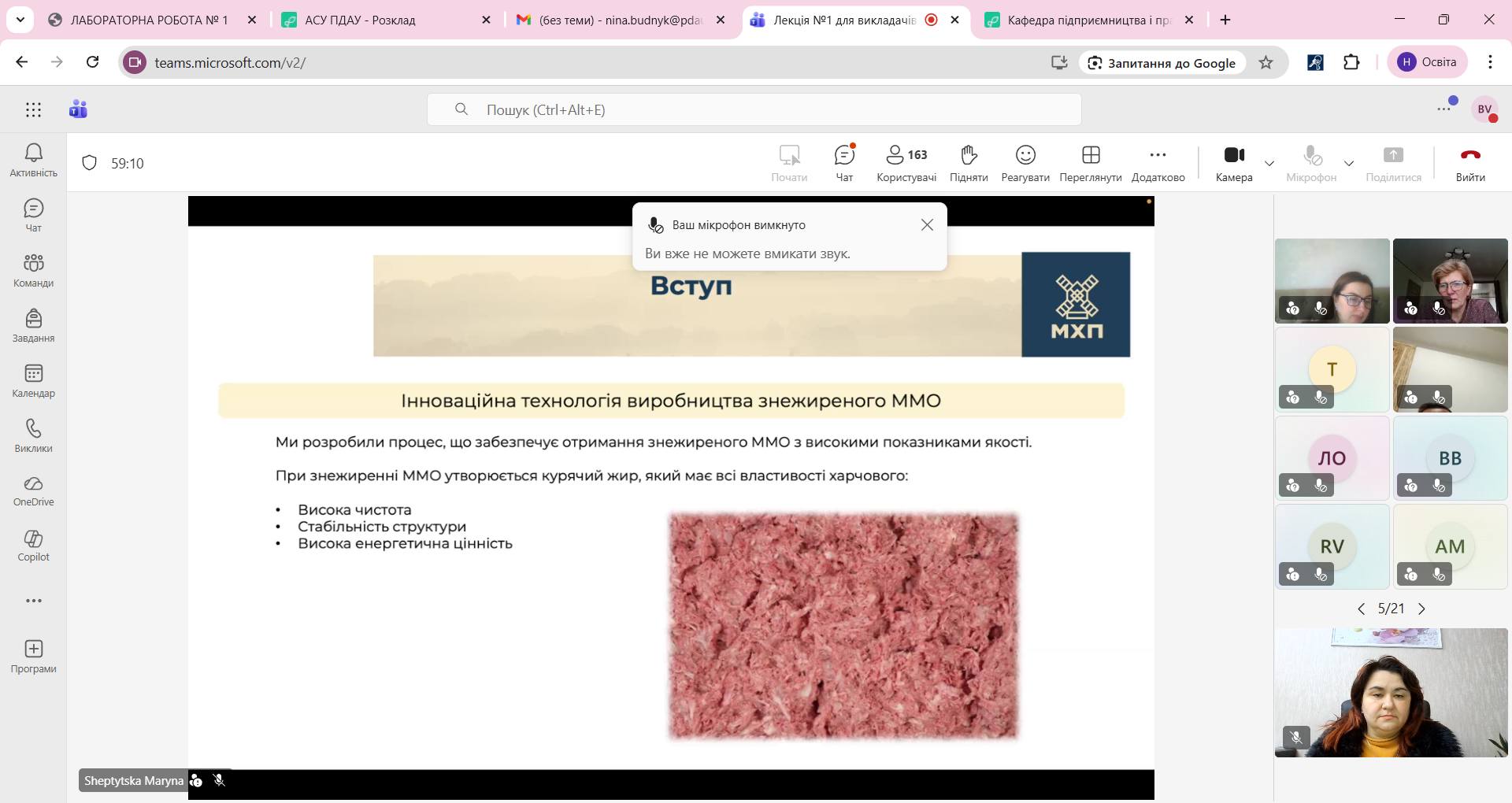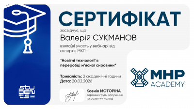 Викладачі кафедри харчових технологій долучилися до серії онлайн-лекцій, присвячених сучасним технологіям харчової та переробної галузі, організованих компанією МХП. Захід був спрямований на підвищення професійної компетентності викладачів спеціальності «Харчові технології» та ознайомлення з актуальними виробничими рішеннями, що впроваджуються на сучасних підприємствах галузі.