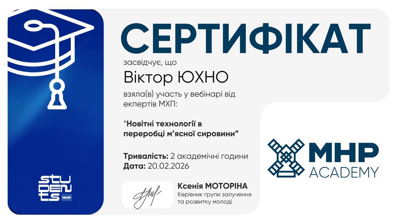 20 лютого 2026 року – «Новітні технології в переробці м’ясної сировини»;