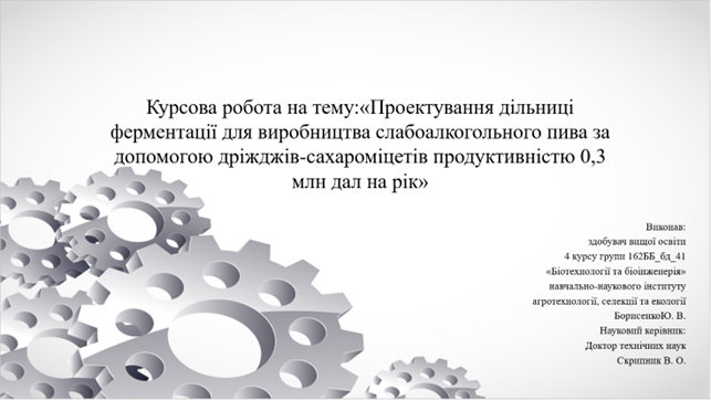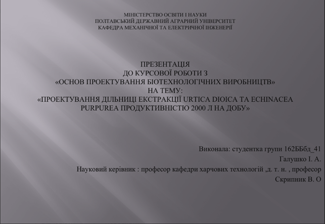 Захист курсових робіт з навчальної дисципліни «Основи проєктування біотехнологічних виробництв»