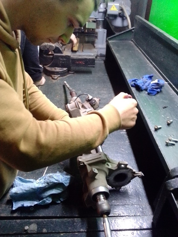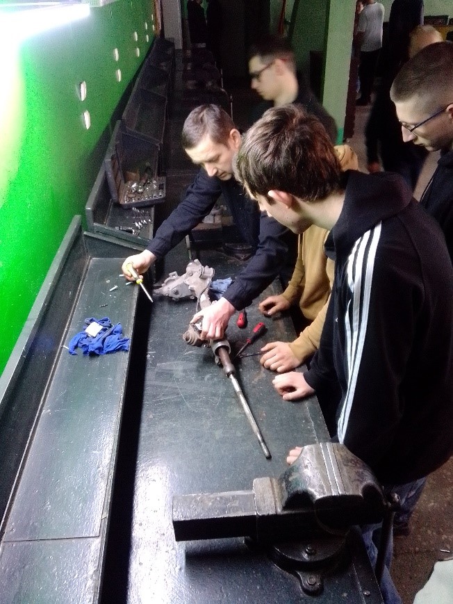 Тема чергового заняття: «Особливості технології розбирання складальних одиниць систем автомобіля». Цього разу в центрі уваги опинилася система керування автомобіля марки Toyota. Студенти не тільки теоретично ознайомились з компонентами механізму, а й власноруч виконали розбирання складальних одиниць вузла автомобіля та дефектування його деталей.