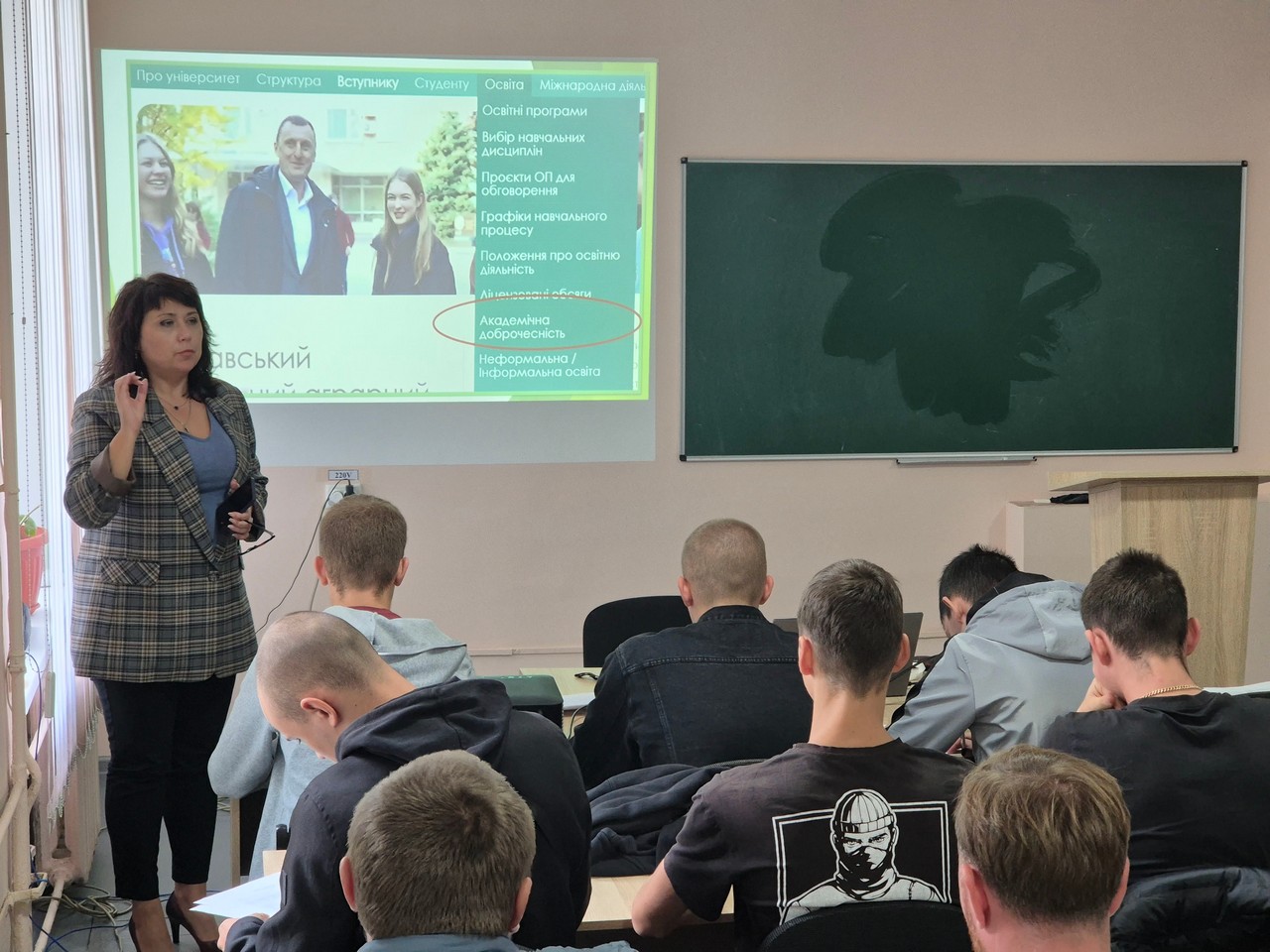 Під час заходу Юлія Басова розповіла про значення академічної доброчесності в освітньому процесі. Вона наголосила, що доброчесність – це не формальність, а фундамент довіри в університетському середовищі. Дотримання принципів чесності, уникнення плагіату, повага до інтелектуальної власності – це ті цінності, які визначають рівень майбутнього фахівця та його репутацію в професійному середовищі.