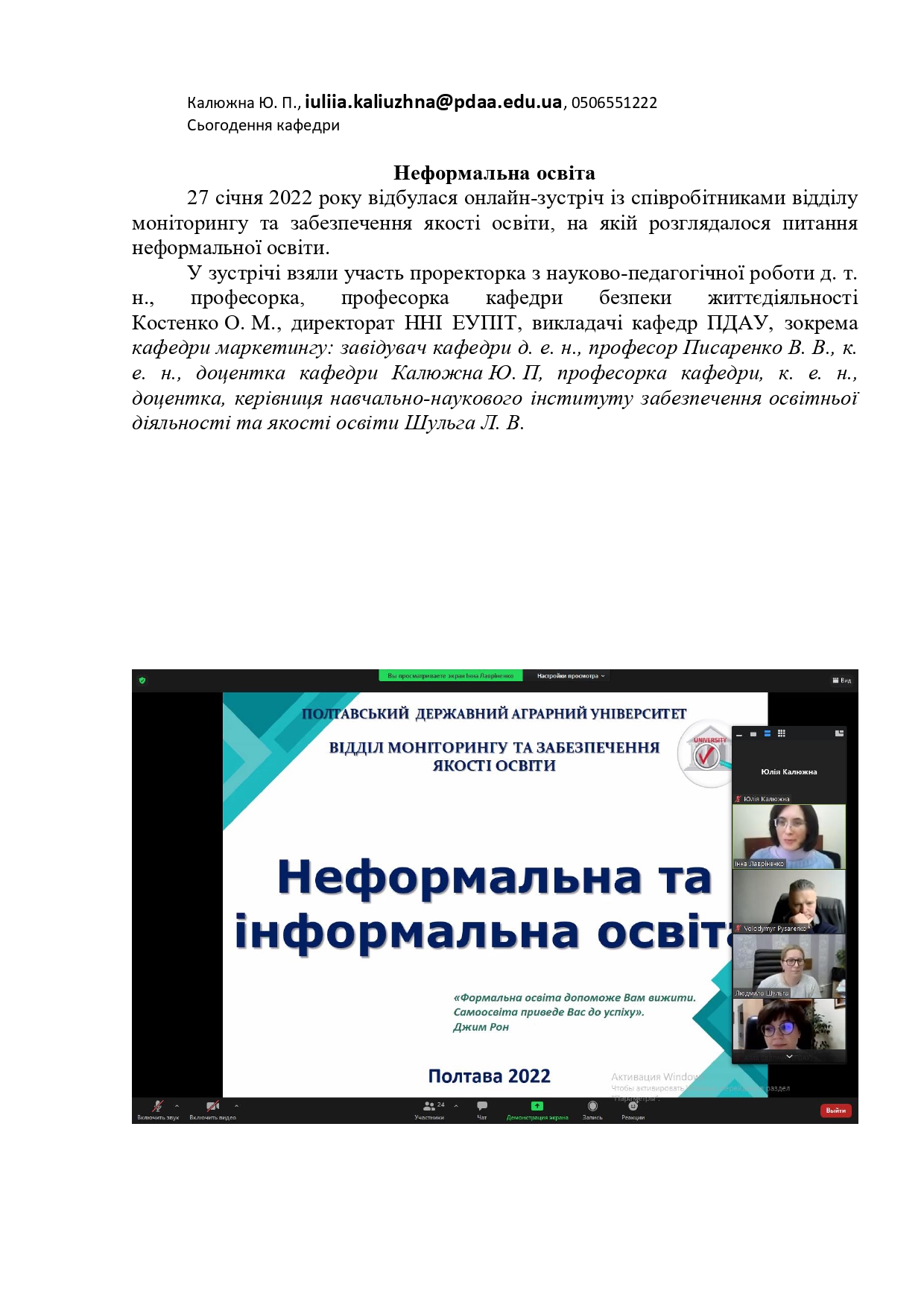 16 лютого 2022 року кафедра економіки та міжнародних економічних відносин Полтавського державного аграрного університету взяла участь в онлайн-семінарі «Розвиток кадрового потенціалу територіальних громад Полтавської області» за підтримки Програми USAID.