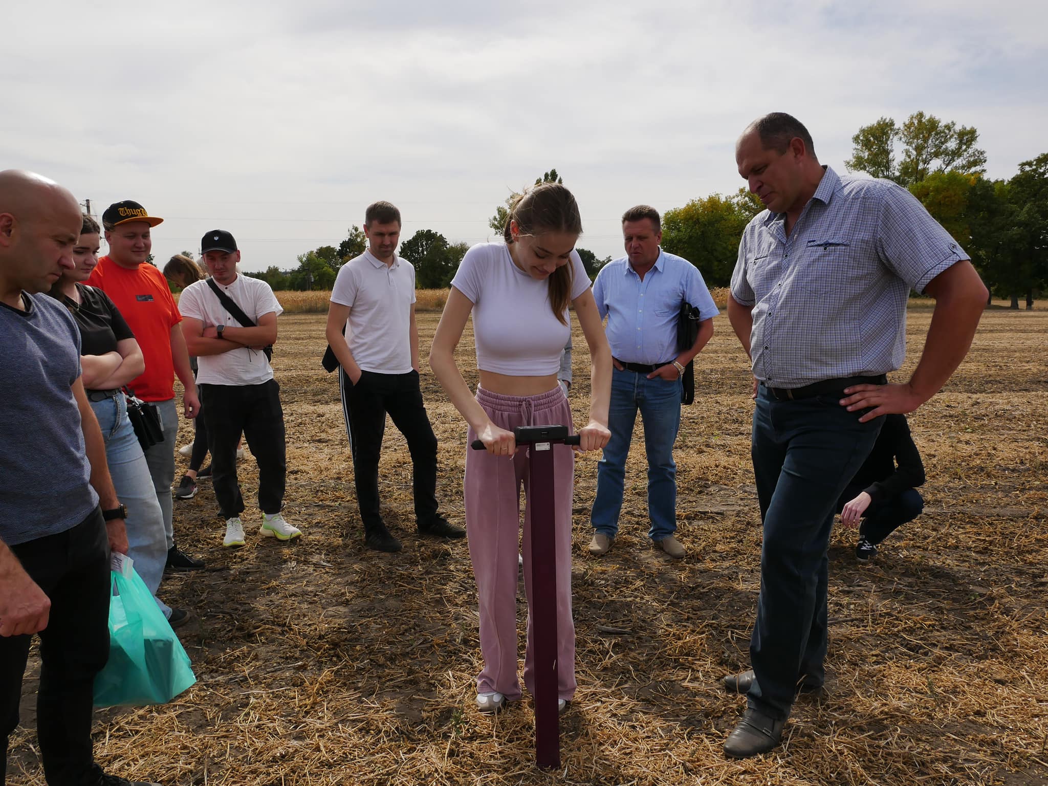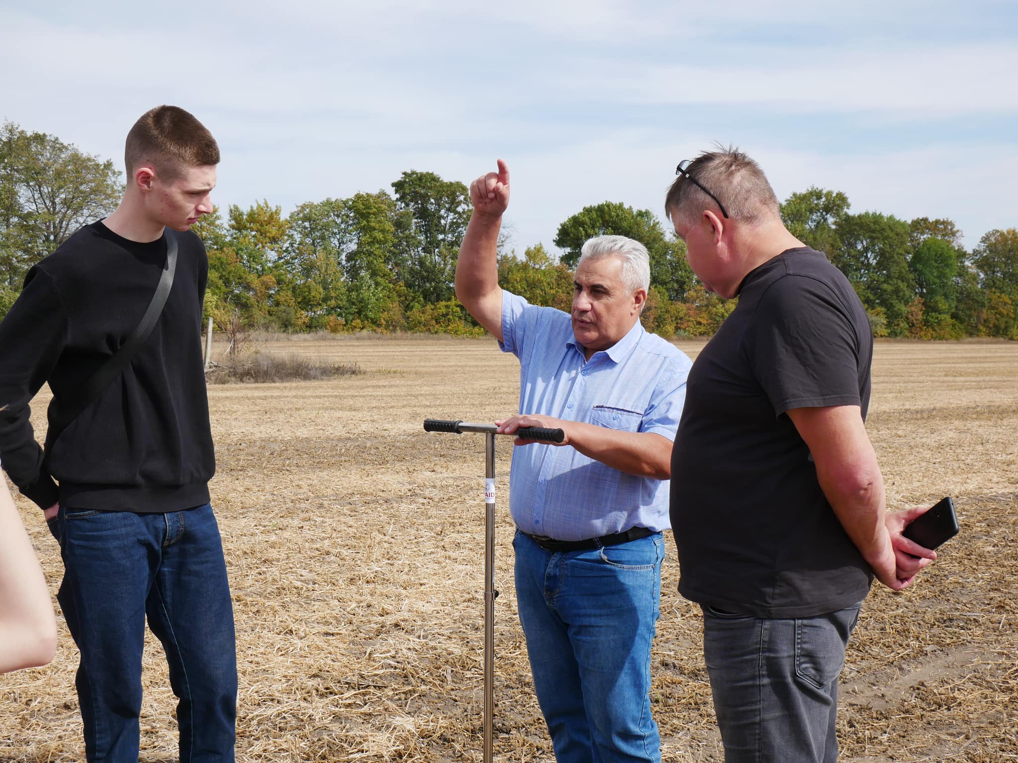 Практична частина заходу пройшла на полях ТОВ «Хорол-Агро», де вирощуються соя та кукурудза. Керівник підприємства Юрій Васецький поділився досвідом розв'язання проблем, пов'язаних з агрометеорологічними факторами, які впливають на формування врожайності. Юрій Петрович висловив намір скористатися послугами Центру для обстеження полів, особливо тих, що мають проблеми з родючістю.
