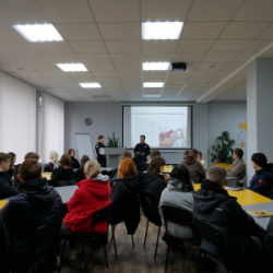Лекторами були оперуповноважені відділу протидії кіберзлочинам у Полтавській області Департаменту кіберполіції Національної поліції України Ростислав Конюшенко та Дар’я Рябцева. Вони розповіли про сучасні маніпулятивні технології, які використовуються у соціальних мережах і медіапросторі, поділилися практичними порадами щодо захисту персональних даних, кібергігієни та безпечної поведінки в цифровому середовищі.