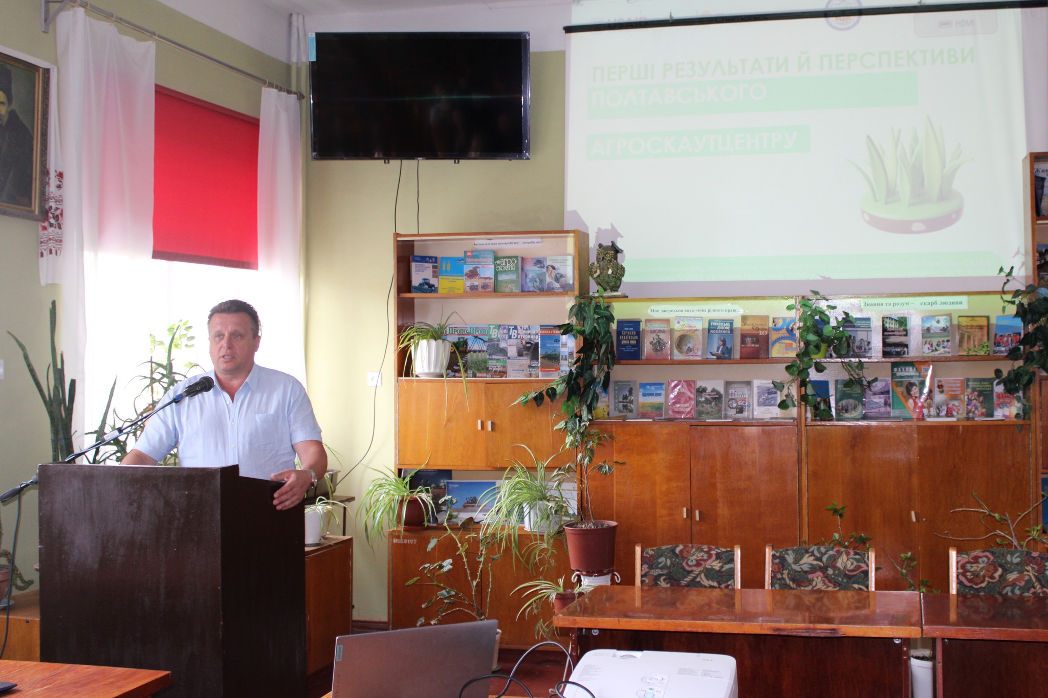 Директор ННІ агротехнологій та екології ПДАУ, доктор сільськогосподарських наук, професор Микола МАРЕНИЧ, керівник проєкту Полтавський АгроСкаут-Центр, представив результати діяльності Центру та окреслив перспективи обслуговування малих і середніх сільськогосподарських підприємств.