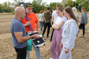 Учасники заходу мали нагоду вирушити на поля ТОВ «Хорол-Агро», де відбувся демонстраційний показ обладнання для моніторингу якості ґрунтів і фітосанітарної оцінки посівів. Практичні аспекти досліджень представили експерти АгроСкаут-Центру В. Гангур, О. Міщенко, Р. Олепір та Г. Поспєлова, які продемонстрували методику обстеження полів і практичне використання спеціалізованих приладів.