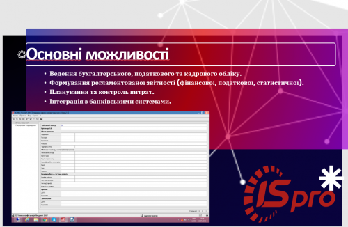 Особливу увагу учасники приділили можливостям програмного продукту IS-Pro, в якому поєднується бухгалтерський, податковий та управлінський облік, є гнучкий інструментарій, аби адаптуватися під потреби різних підприємств.