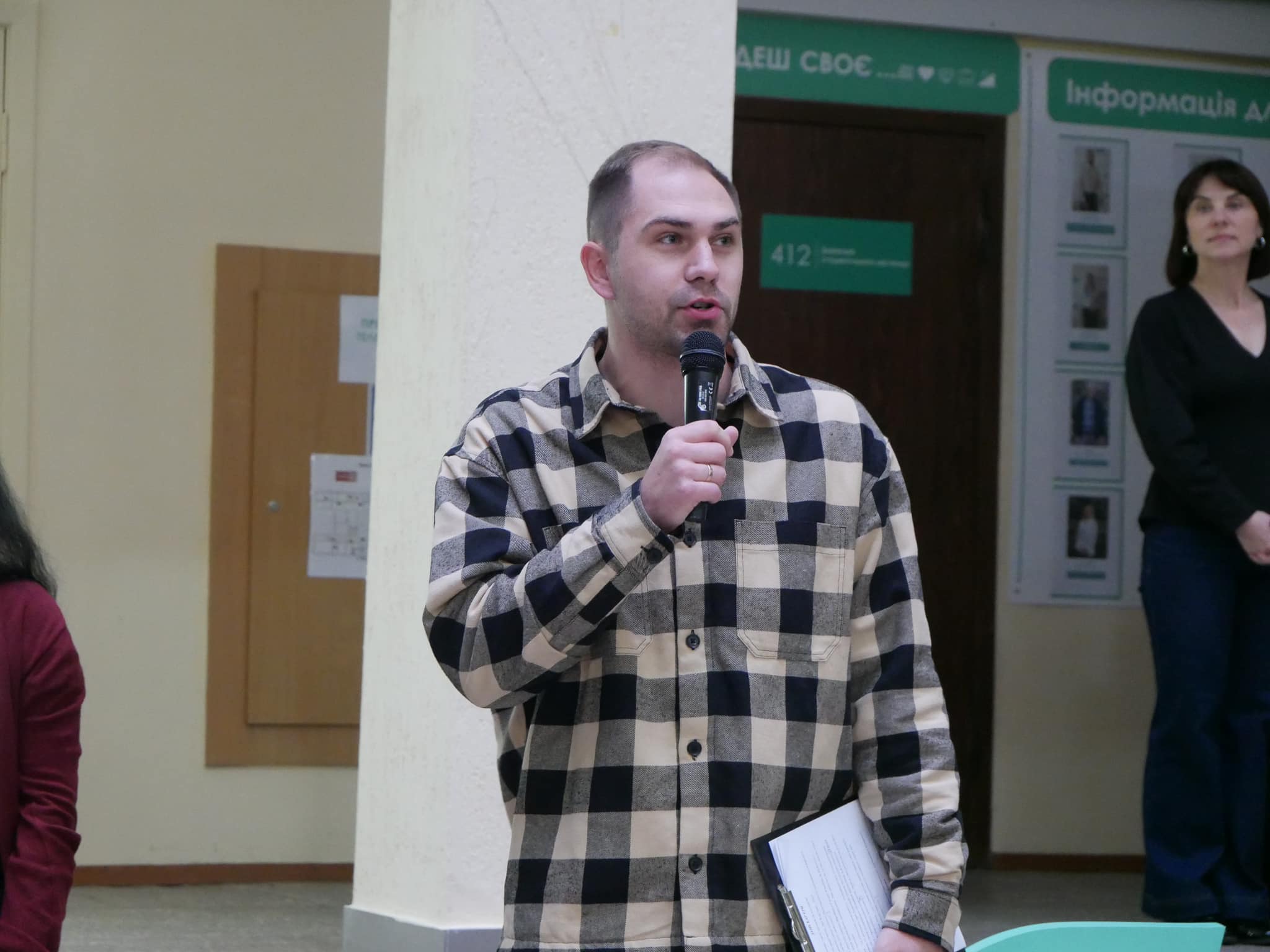 Голова ГО «Полтавська обласна асоціація фермерів і приватних землевласників ім. Героя України, Героя Небесної сотні Віктора Чміленка» Василь Бурлака подякував за організацію такого важливого заходу, відзначивши приємну активність і бізнесу, і студентів, а також побажав усім отримати потрібну інформацію.