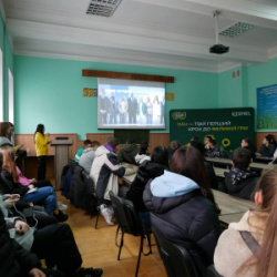 Інна Сергієнко, керівниця освітніх проєктів KERNEL, та Олена Кашуба, фахівчиня з підбору персоналу, ознайомили здобувачів спеціальності Н1 Агрономія ОНП "Агрономія", ОПП "Еколого-економічне рослинництво", "Насінництво і насіннєзнавство", "Агрономія", "Захист і карантин рослин" навчально-наукового інституту агротехнологій, селекції та екології з напрямами діяльності компанії KERNEL, можливостями проходження виробничих практик на базі активів компанії та кар’єрними пропозиціями для студентів старших курсів і випускників. Презентували освітні ініціативи та проєкти для молоді, зокрема Open AgriTech University — програму, що вже об’єднала сотні студентів аграрних і технічних університетів по всій Україні.