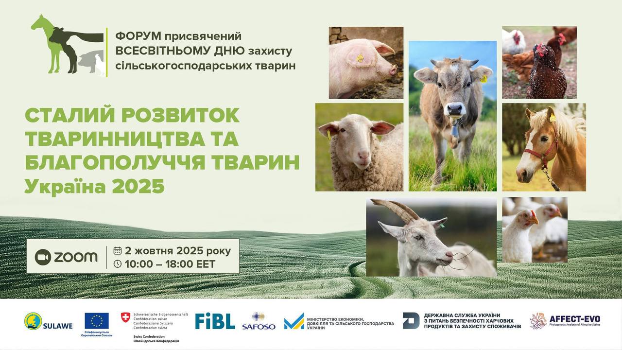 З нагоди відзначення Всесвітнього дня сільськогосподарських тварин 2 жовтня відбувся форум «Сталий розвиток тваринництва та благополуччя тварин – Україна 2025», який став майданчиком для обговорення трансформацій тваринницького сектора України в умовах війни та євроінтеграції для понад 500 учасників.