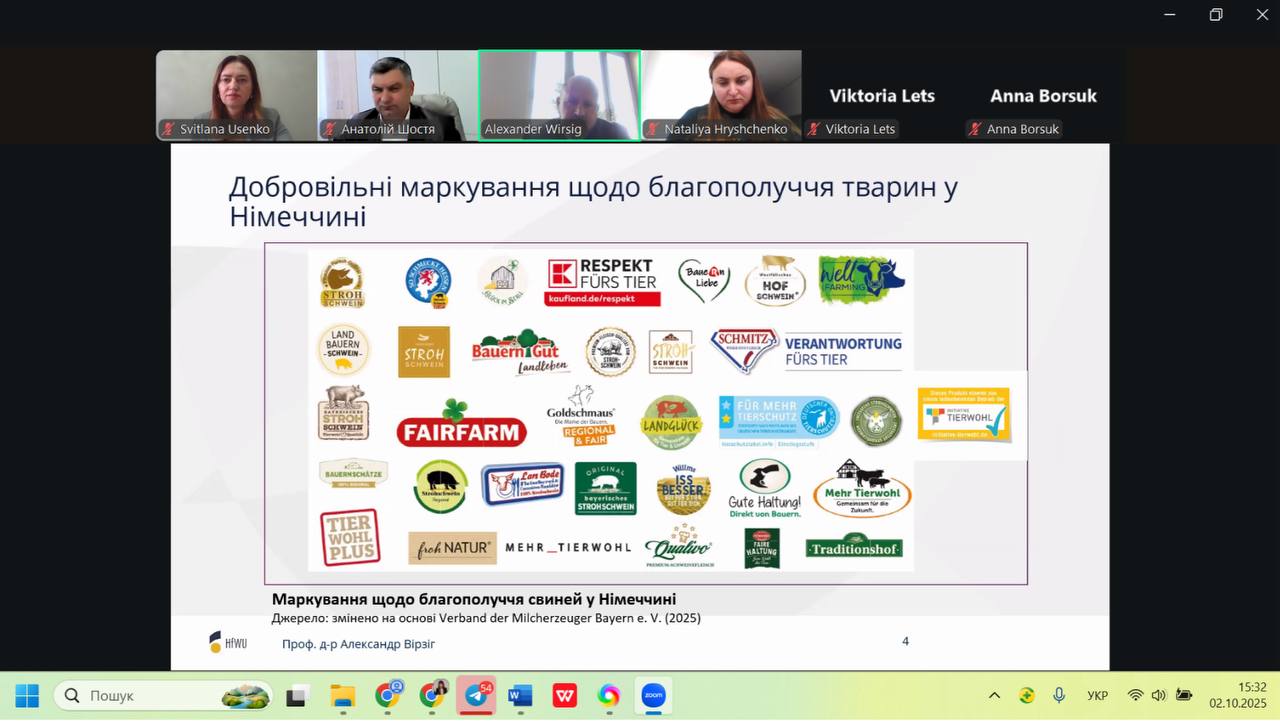 Александр Вірзіг (Університет Нюртинген-Гайслінген, Німеччина), який поділився європейським досвідом щодо маркування харчових продуктів, наголошуючи на добробуті тварин;