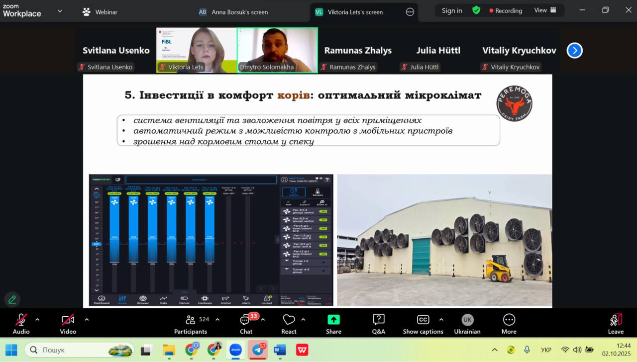 Під час другої сесії «Від ферми до дотримання законодавства: впровадження правил щодо благополуччя тварин» (модераторка Вікторія Лець, національна експертка компонента «Молочний сектор», QFTP) Дмитро Соломаха (СТОВ «Перемога») поділився досвідом і практиками впровадження правил благополуччя тварин у господарствах з виробництва молока в Україні; Вадим Каратнюк (ТОВ Вінницька птахофабрика) розказав про застосування цих правил у птахогосподарствах.