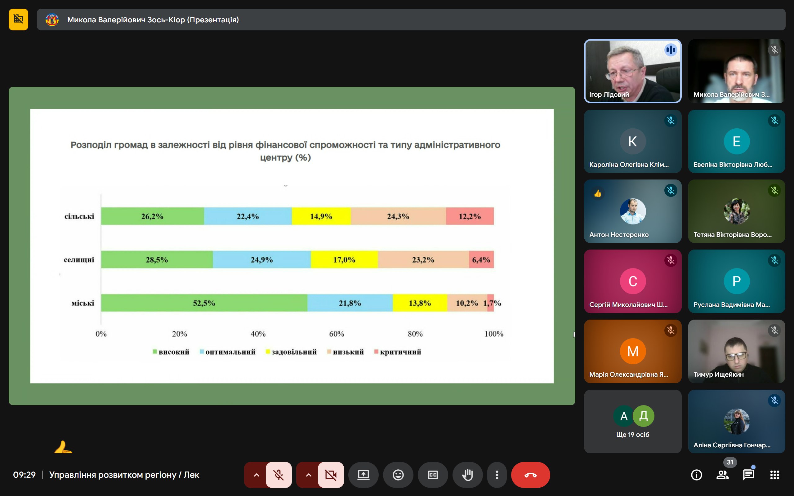 28 листопада 2025 року відбулася надзвичайно важлива подія для всіх, хто цікавиться розвитком громад і реформою децентралізації в Україні. Колектив кафедри менеджменту ім. І. А. Маркіної мав честь приймати Лідового Ігоря Григоровича, голову Сергіївської сільської територіальної громади та члена правління Всеукраїнської Асоціації ОТГ, який у межах вивчення студентами навчальної дисципліни "Управління розвитком регіону" (викладач — професор Микола Зось-Кіор, модератор — здобувач вищої освіти за ОНП "Менеджмент" Антон Нестеренко) провів відкриту лекцію на тему "Децентралізація та місцеве самоврядування в регіоні". Ігор Григорович поділився практичним досвідом управління громадою та розповів про ключові аспекти децентралізації, її вплив на розвиток регіонів, а також про виклики та успіхи місцевого самоврядування. Під час лекції лектор надав цікаві дані, що ілюструють поточний стан фінансової спроможності громад в Україні. Ці факти підкреслюють важливість ефективного місцевого самоврядування. Дякуємо Ігорю Григоровичу за змістовну лекцію та цінні інсайти! Сподіваємося, що надана інформація надихне на активну участь у процесах місцевого розвитку!