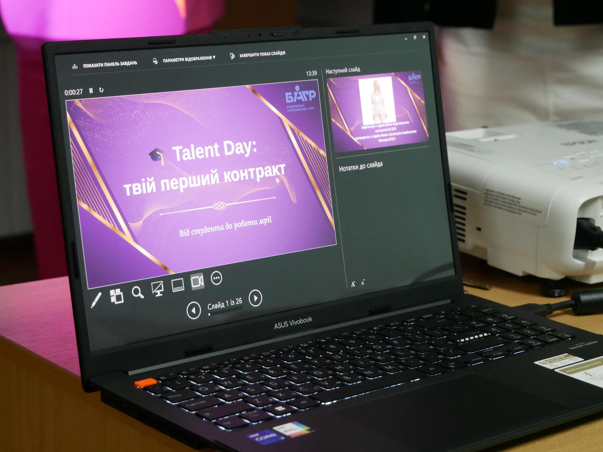 Завершальним заходом серії став тренінг «Talent Day: твій перший контракт» від Оксани Реви (ПП «Білоцерківська агропромислова група»). Вона поділилася стратегіями формування успішної кар’єри, наголосивши на важливості свідомого цілепокладання. Лейтмотивом зустрічі стала теза про те, що робота мрії створюється щоденними професійними рішеннями та системним розвитком.
